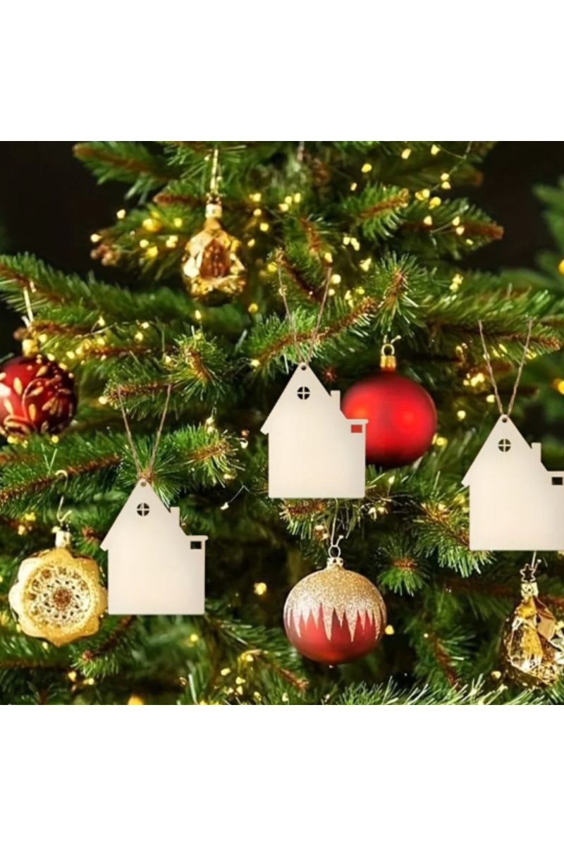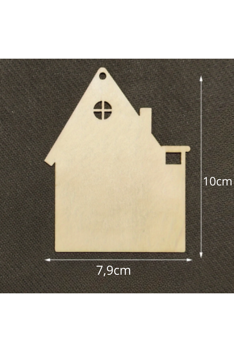 Drewniany Domek ze Sklejki 10 × 7,9 cm – Zestaw 10 sztuk | Zawieszki Dekoracyjne DIY, Rękodzieło, Styl Rustykalny