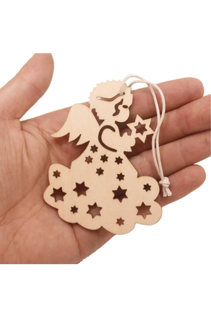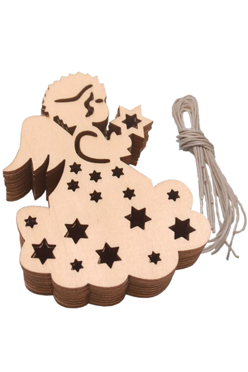 Drewniany Aniołek 8 cm – Zestaw 10 sztuk | Ozdoby Świąteczne DIY z naturalnej sklejki brzozowej