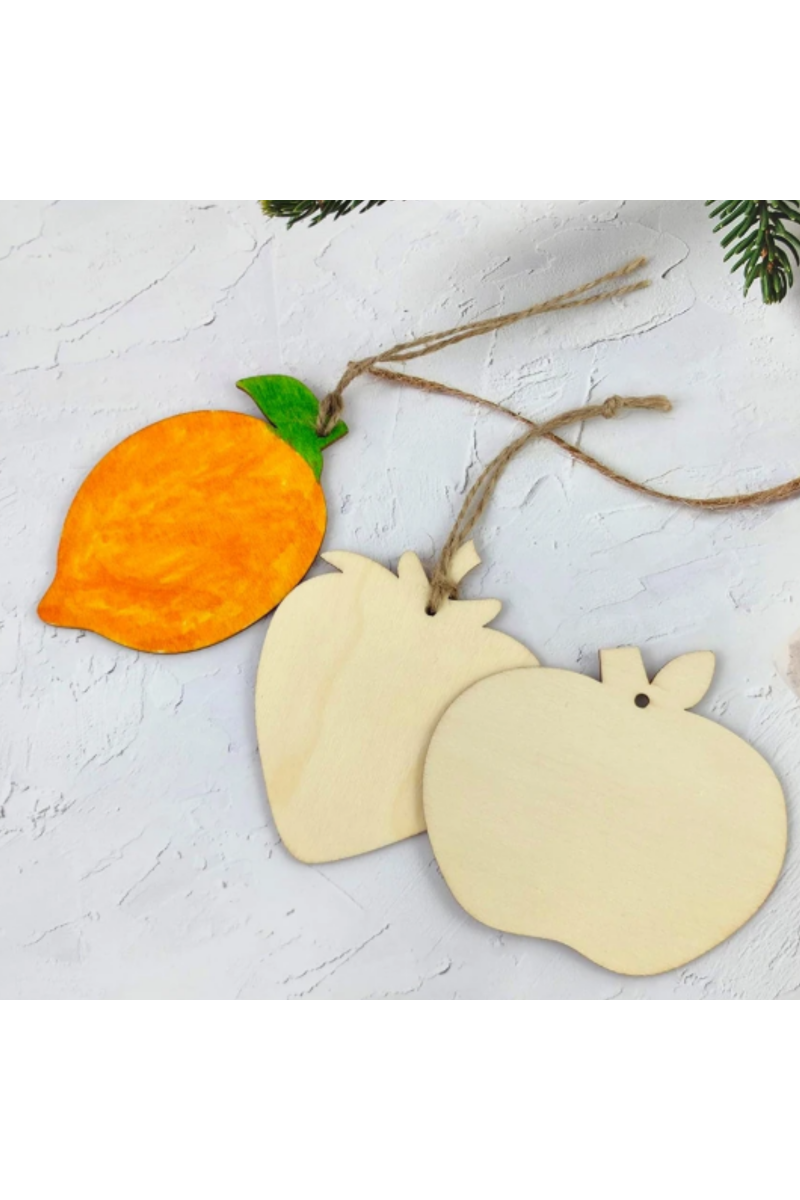 Każdy element został starannie wycięty laserowo z wysokiej jakości sklejki brzozowej, ma gładką powierzchnię i praktyczny otworek, dzięki któremu można go zawiesić lub zamocować. Owoce świetnie sprawdzą się jako dekoracje do kuchni, ozdoby okolicznościowe, elementy prac plastycznych czy upominki handmade.