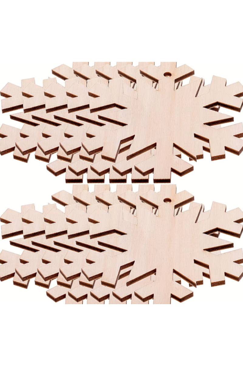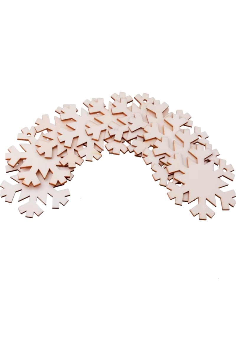 Dzięki precyzyjnemu cięciu laserowemu każdy płatek ma idealnie gładkie krawędzie i delikatne detale. Naturalna powierzchnia drewna jest gotowa do zdobienia — możesz ją malować, bejcować, ozdabiać brokatem, wykonać decoupage lub wypalać wzory pirografem.