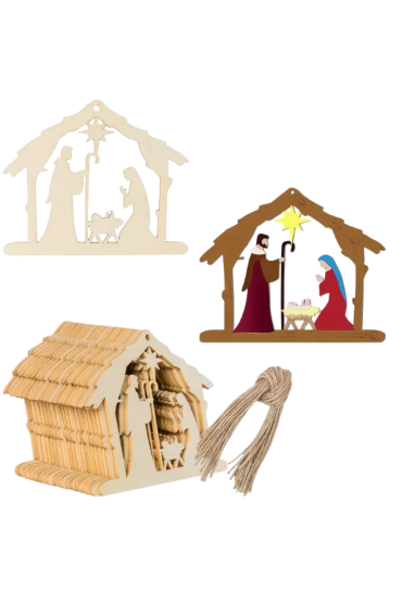 Drewniane szopki doskonale sprawdzą się jako ozdoby choinkowe, w stroikach, wińcach, kompozycjach świątecznych oraz jako uroczy dodatek do prezentów.