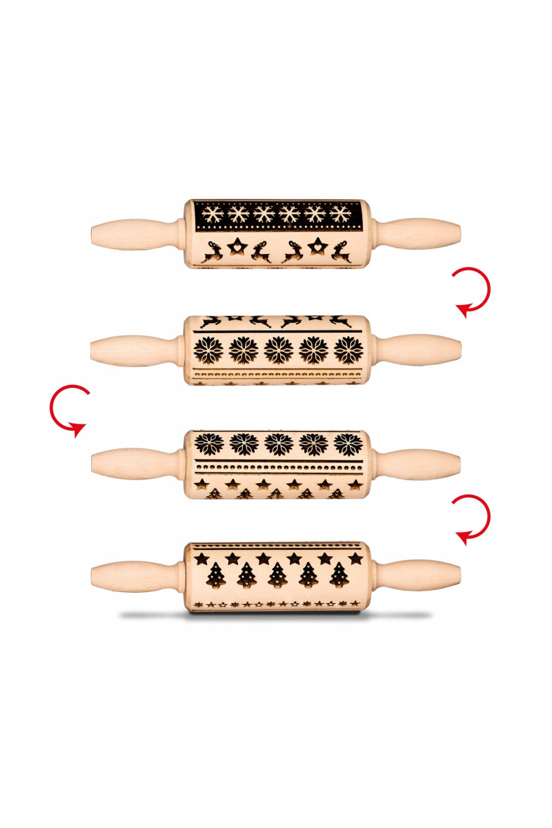 Mini wałek do ciasta z głębokim grawerem – idealny dla dzieci, motyw „Wzorki Świąteczne”